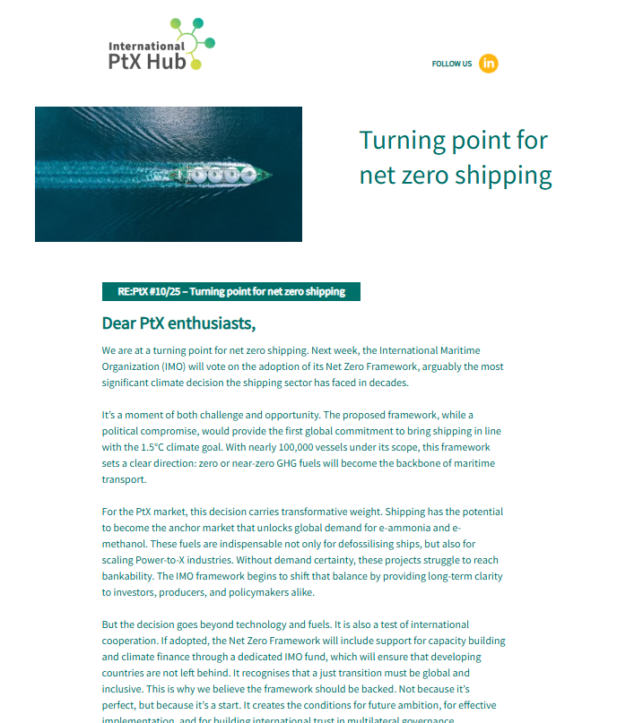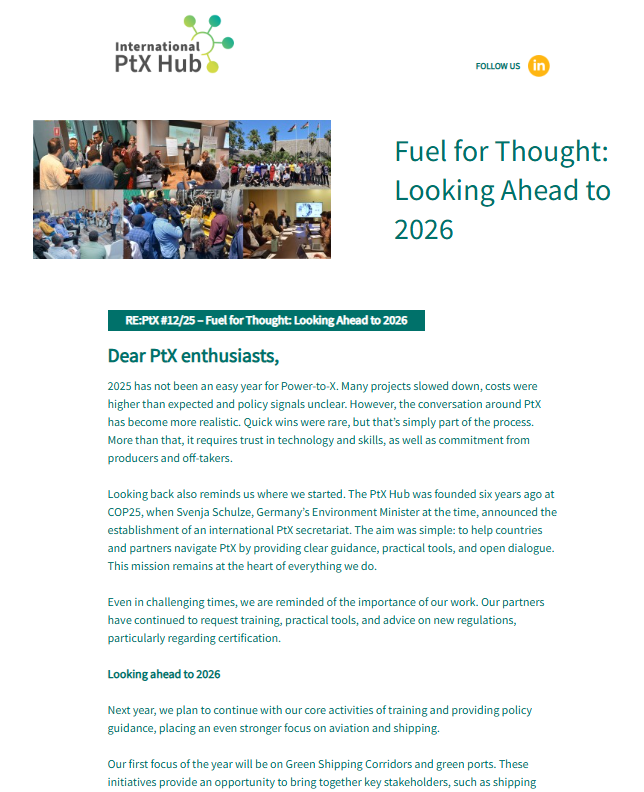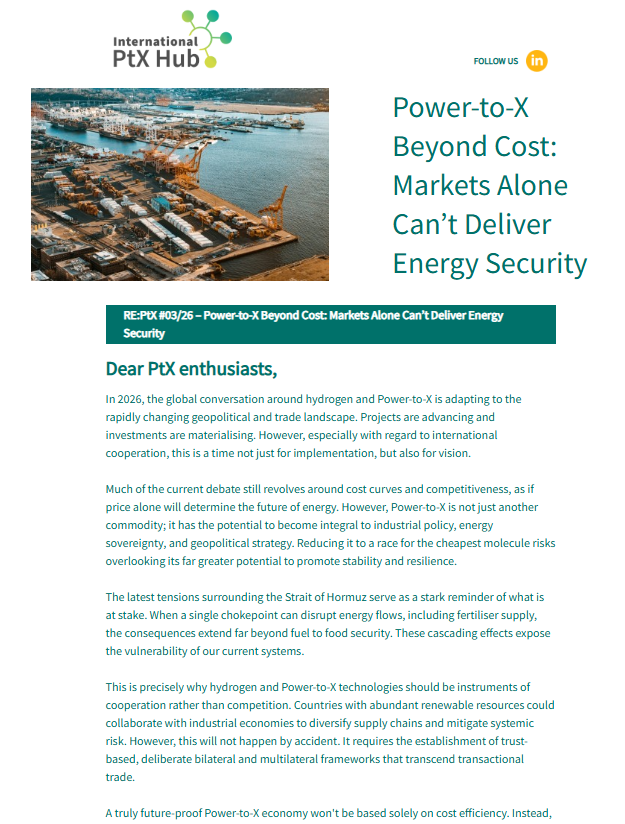 Our newsletter features the most recent developments and trends for Power-to-X and green hydrogen as well as our activities, events and publications.