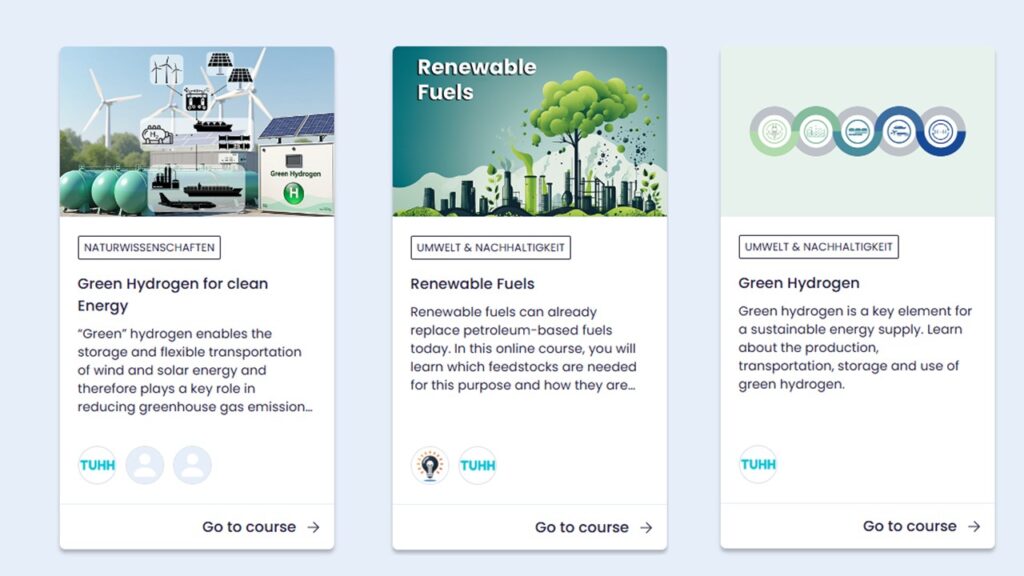 The Hamburg University of Technology offers e-learning courses on renewable fuels and green hydrogen via the Hamburg Open Online University.